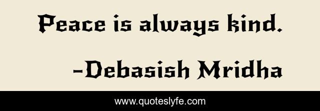 "Debasish Mridha Quotes." Quoteslyfe.com, 2025. Tue. 09 Dec. 2025. <https://www.quoteslyfe.com/quote/Peace-is-always-kind-69378>.