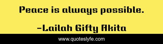 This page presents the quote "Peace is always possible.". Author of this quote is Lailah Gifty Akita. This quote is about enthusiasm, peace, humanity, inspirational, understanding,.