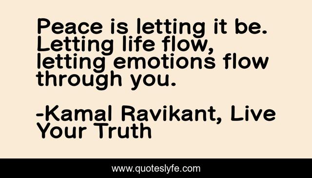 This page presents the quote "Peace is letting it be. Letting life flow, letting emotions flow through you.". Author of this quote is Kamal Ravikant, Live Your Truth. This quote is about peace-of-mind, peace, honesty,.
