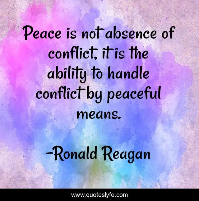 "Ronald Reagan Quotes." Quoteslyfe.com, 2025. Sun. 07 Dec. 2025. <https://www.quoteslyfe.com/quote/Peace-is-not-absence-of-conflict-it-323356>.