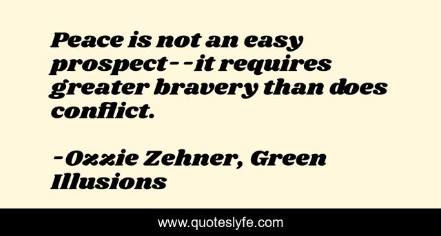 This page presents the quote "Peace is not an easy prospect--it requires greater bravery than does conflict.". Author of this quote is Ozzie Zehner, Green Illusions. This quote is about peace, war, bravery, conflict, wisdom,.