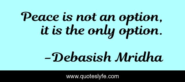 "Debasish Mridha Quotes." Quoteslyfe.com, 2025. Sat. 06 Dec. 2025. <https://www.quoteslyfe.com/quote/Peace-is-not-an-option-it-is-68719>.
