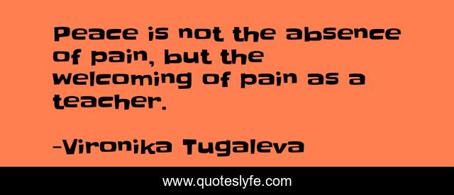This page presents the quote "Peace is not the absence of pain, but the welcoming of pain as a teacher.". Author of this quote is Vironika Tugaleva. This quote is about self-healing, pain, mindfulness, peace, healing, meditation, inner-peace,.