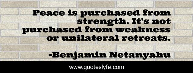 "Benjamin Netanyahu Quotes." Quoteslyfe.com, 2025. Sun. 07 Dec. 2025. <https://www.quoteslyfe.com/quote/Peace-is-purchased-from-strength-It-s-294241>.