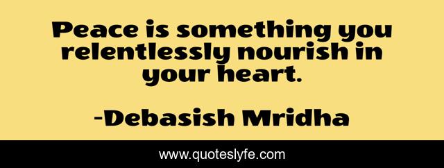 This page presents the quote "Peace is something you relentlessly nourish in your heart.". Author of this quote is Debasish Mridha. This quote is about peace-nourishes, peace, philosophy, debasish-mridha, quotes, debasish-mridha-md, inspirational, enthusiasm, nourish-your-heart,.