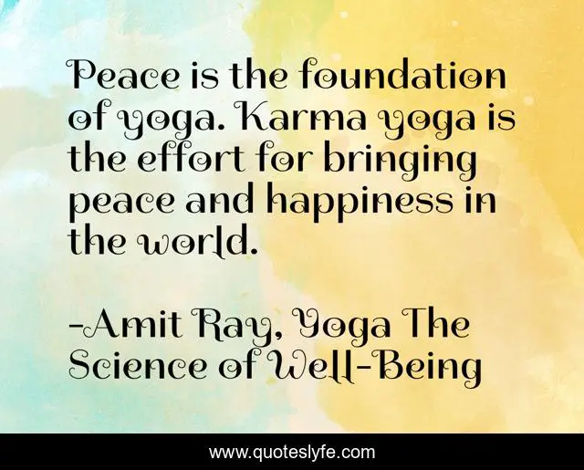 "Amit Ray, Yoga The Science of Well-Being Quotes." Quoteslyfe.com, 2025. Tue. 09 Dec. 2025. <https://www.quoteslyfe.com/quote/Peace-is-the-foundation-of-yoga-Karma-73502>.