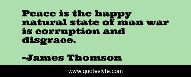 This page presents the quote "Peace is the happy natural state of man war is corruption and disgrace.". Author of this quote is James Thomson. This quote is about happy, peace, man,.