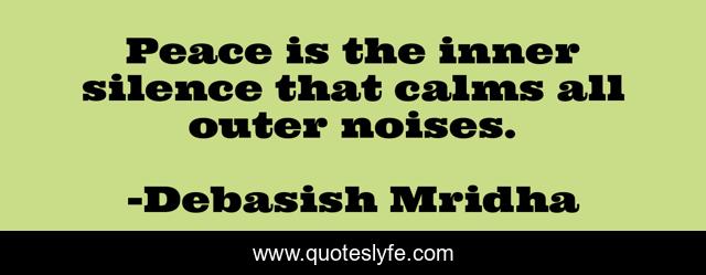 This page presents the quote "Peace is the inner silence that calms all outer noises.". Author of this quote is Debasish Mridha. This quote is about peace, outer-noises, debasish-mridha, quotes, inspirational, enthusiasm, debasish-mridha-m-d, philosophy, inner-silence,.