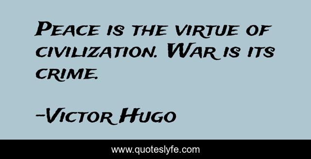 This page presents the quote "Peace is the virtue of civilization. War is its crime.". Author of this quote is Victor Hugo. This quote is about peace, virtue, crime,.