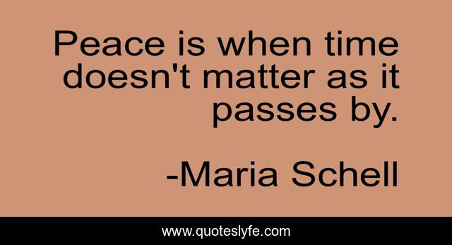 This page presents the quote "Peace is when time doesn't matter as it passes by.". Author of this quote is Maria Schell. This quote is about matter, time, passes,.