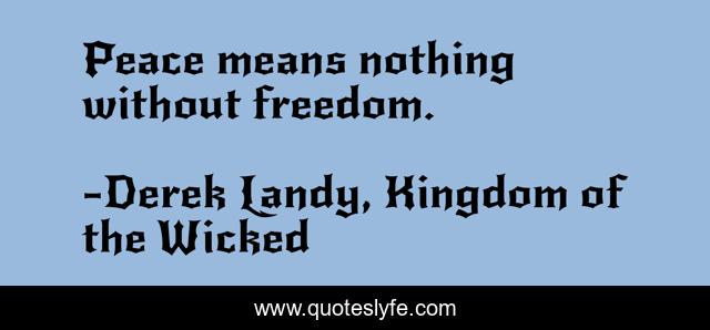 "Derek Landy, Kingdom of the Wicked Quotes." Quoteslyfe.com, 2025. Mon. 08 Dec. 2025. <https://www.quoteslyfe.com/quote/Peace-means-nothing-without-freedom-54390>.