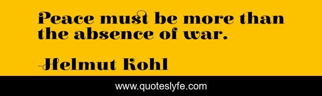 This page presents the quote "Peace must be more than the absence of war.". Author of this quote is Helmut Kohl. This quote is about absence, peace,.