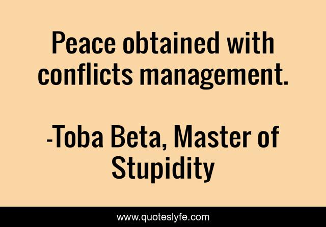 This page presents the quote "Peace obtained with conflicts management.". Author of this quote is Toba Beta, Master of Stupidity. This quote is about obtained, peace, conflicts-management,.