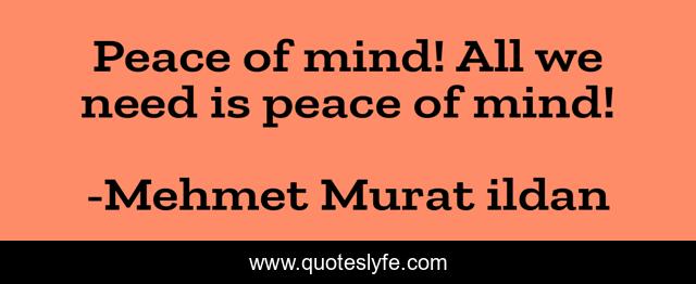 This page presents the quote "Peace of mind! All we need is peace of mind!". Author of this quote is Mehmet Murat ildan. .