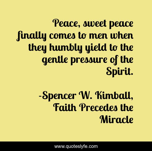 "Spencer W. Kimball, Faith Precedes the Miracle Quotes." Quoteslyfe.com, 2025. Sun. 07 Dec. 2025. <https://www.quoteslyfe.com/quote/Peace-sweet-peace-finally-comes-to-men-29876>.