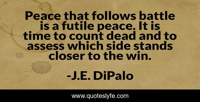 "J.E. DiPalo Quotes." Quoteslyfe.com, 2025. Sat. 06 Dec. 2025. <https://www.quoteslyfe.com/quote/Peace-that-follows-battle-is-a-futile-52741>.