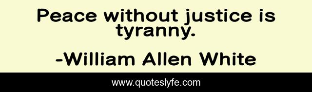 "William Allen White Quotes." Quoteslyfe.com, 2025. Tue. 09 Dec. 2025. <https://www.quoteslyfe.com/quote/Peace-without-justice-is-tyranny-323477>.