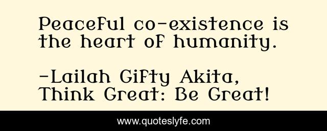 "Lailah Gifty Akita, Think Great: Be Great! Quotes." Quoteslyfe.com, 2025. Sat. 06 Dec. 2025. <https://www.quoteslyfe.com/quote/Peaceful-co-existence-is-the-heart-of-73882>.