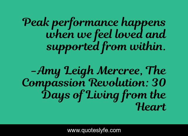 "Amy Leigh Mercree, The Compassion Revolution: 30 Days of Living from the Heart Quotes." Quoteslyfe.com, 2025. Sat. 06 Dec. 2025. <https://www.quoteslyfe.com/quote/Peak-performance-happens-when-we-feel-loved-15229>.