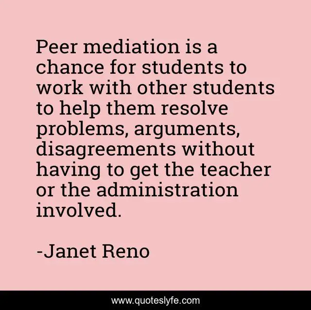 "Janet Reno Quotes." Quoteslyfe.com, 2025. Fri. 05 Dec. 2025. <https://www.quoteslyfe.com/quote/Peer-mediation-is-a-chance-for-students-293309>.