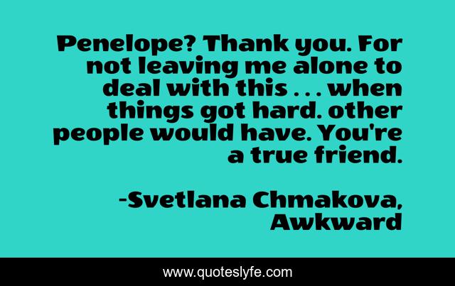 "Svetlana Chmakova, Awkward Quotes." Quoteslyfe.com, 2025. Mon. 08 Dec. 2025. <https://www.quoteslyfe.com/quote/Penelope-Thank-you-For-not-leaving-me-50781>.
