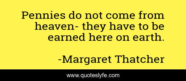 This page presents the quote "Pennies do not come from heaven- they have to be earned here on earth.". Author of this quote is Margaret Thatcher. .