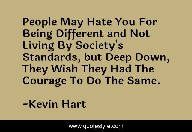 This page presents the quote "People May Hate You For Being Different and Not Living By Society's Standards, but Deep Down, They Wish They Had The Courage To Do The Same.". Author of this quote is Kevin Hart. .