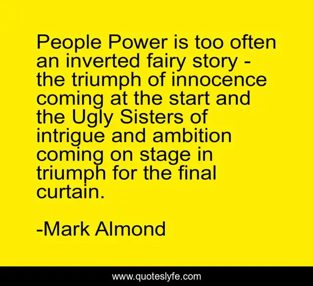 This page presents the quote "People Power is too often an inverted fairy story - the triumph of innocence coming at the start and the Ugly Sisters of intrigue and ambition coming on stage in triumph for the final curtain.". Author of this quote is Mark Almond. .