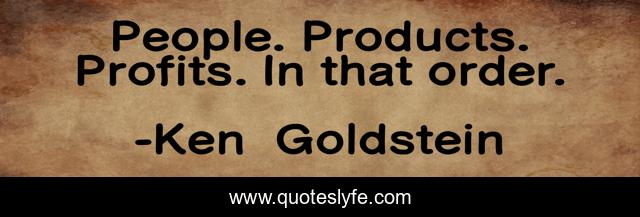 This page presents the quote "People. Products. Profits. In that order.". Author of this quote is Ken Goldstein. This quote is about management, leadership,.
