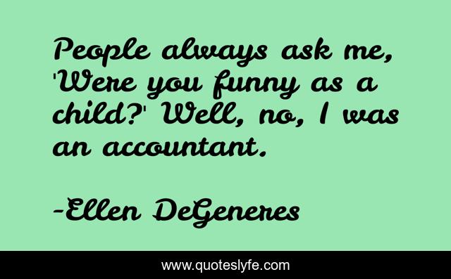 This page presents the quote "People always ask me, 'Were you funny as a child?' Well, no, I was an accountant.". Author of this quote is Ellen DeGeneres. This quote is about me, child, people,.