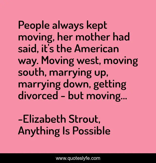 "Elizabeth Strout, Anything Is Possible Quotes." Quoteslyfe.com, 2025. Mon. 08 Dec. 2025. <https://www.quoteslyfe.com/quote/People-always-kept-moving-her-mother-had-51506>.