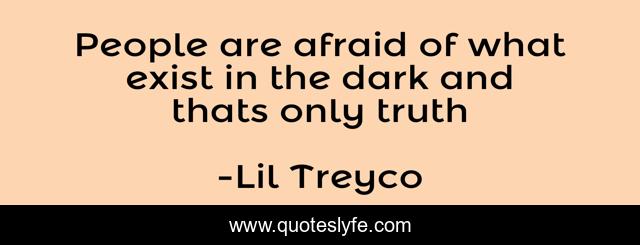 This page presents the quote "People are afraid of what exist in the dark and thats only truth". Author of this quote is Lil Treyco. This quote is about faith, life, love, honesty, truth, affection, happy,.