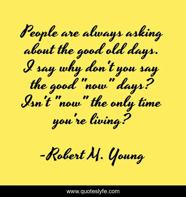 This page presents the quote "People are always asking about the good old days. I say why don't you say the good "now" days? Isn't "now" the only time you're living?". Author of this quote is Robert M. Young. .