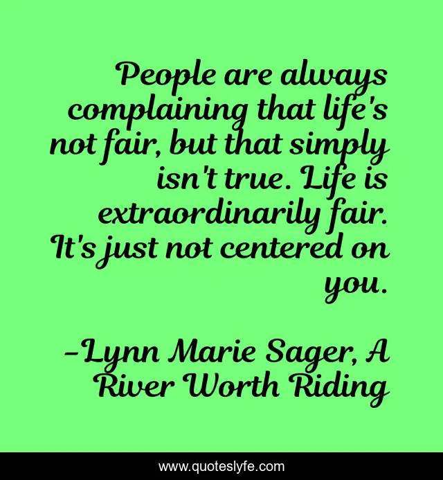 "Lynn Marie Sager, A River Worth Riding Quotes." Quoteslyfe.com, 2025. Mon. 08 Dec. 2025. <https://www.quoteslyfe.com/quote/People-are-always-complaining-that-life-s-9101>.
