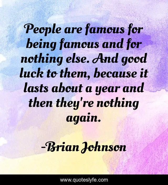 This page presents the quote "People are famous for being famous and for nothing else. And good luck to them, because it lasts about a year and then they're nothing again.". Author of this quote is Brian Johnson. This quote is about luck, good, good luck,.