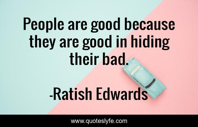 This page presents the quote "People are good because they are good in hiding their bad.". Author of this quote is Ratish Edwards. This quote is about life, goodness, from-the-book-of-edward, humour, people,.