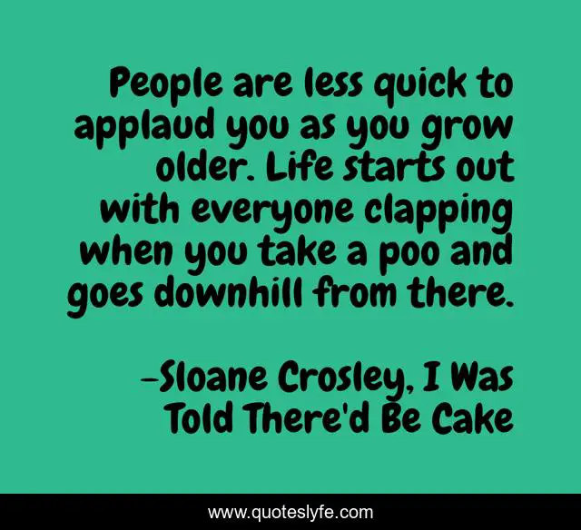 This page presents the quote "People are less quick to applaud you as you grow older. Life starts out with everyone clapping when you take a poo and goes downhill from there.". Author of this quote is Sloane Crosley, I Was Told There'd Be Cake. This quote is about humor, life-lessons,.