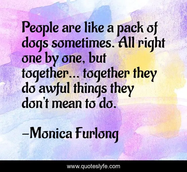 "Monica Furlong Quotes." Quoteslyfe.com, 2025. Sat. 06 Dec. 2025. <https://www.quoteslyfe.com/quote/People-are-like-a-pack-of-dogs-175245>.