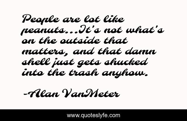 This page presents the quote "People are lot like peanuts...It's not what's on the outside that matters, and that damn shell just gets shucked into the trash anyhow.". Author of this quote is Alan VanMeter. .