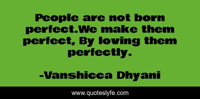 This page presents the quote "People are not born perfect.We make them perfect, By loving them perfectly.". Author of this quote is Vanshicca Dhyani. This quote is about perfect, heart, love, people, human-nature, philosophy, perfection, vanshicca-dhyani, affection,.