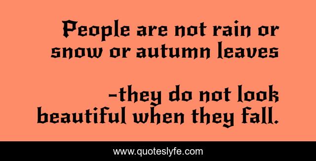 This page presents the quote "People are not rain or snow or autumn leaves". Author of this quote is they do not look beautiful when they fall.. .