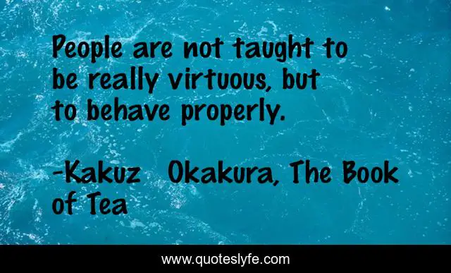 This page presents the quote "People are not taught to be really virtuous, but to behave properly.". Author of this quote is Kakuzō Okakura, The Book of Tea. This quote is about virtuosity, people,.