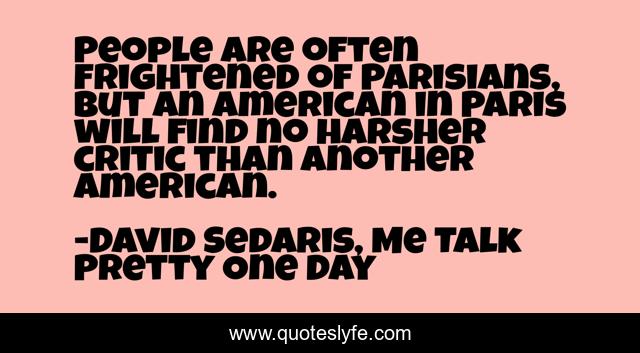 This page presents the quote "People are often frightened of Parisians, but an American in Paris will find no harsher critic than another American.". Author of this quote is David Sedaris, Me Talk Pretty One Day. .