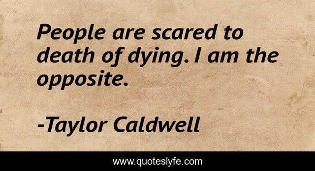 This page presents the quote "People are scared to death of dying. I am the opposite.". Author of this quote is Taylor Caldwell. This quote is about dying, people,.