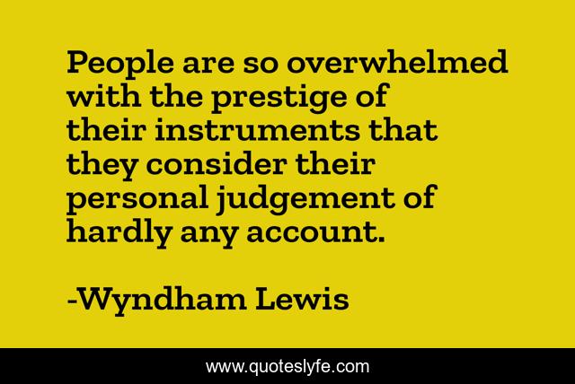 This page presents the quote "People are so overwhelmed with the prestige of their instruments that they consider their personal judgement of hardly any account.". Author of this quote is Wyndham Lewis. This quote is about possession, ownership,.