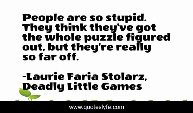 This page presents the quote "People are so stupid. They think they've got the whole puzzle figured out, but they're really so far off.". Author of this quote is Laurie Faria Stolarz, Deadly Little Games. .