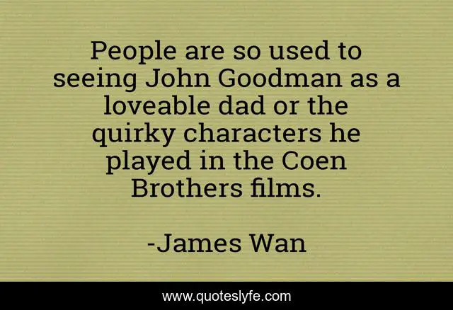 This page presents the quote "People are so used to seeing John Goodman as a loveable dad or the quirky characters he played in the Coen Brothers films.". Author of this quote is James Wan. This quote is about seeing, people, quirky,.