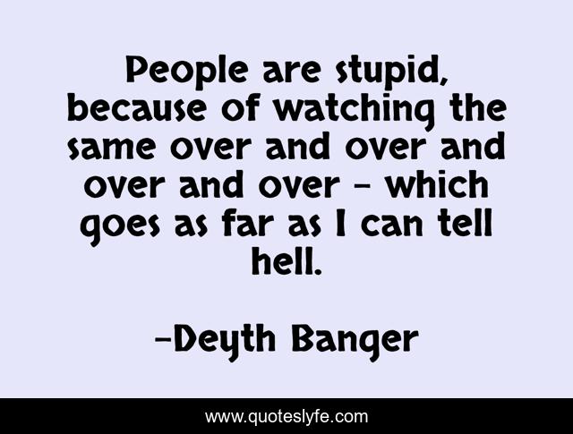 This page presents the quote "People are stupid, because of watching the same over and over and over and over - which goes as far as I can tell hell.". Author of this quote is Deyth Banger. This quote is about because, of, over, same, stupid, watching-the-same, hell,.