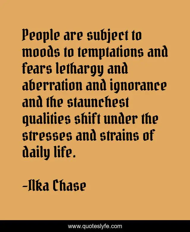 This page presents the quote "People are subject to moods to temptations and fears lethargy and aberration and ignorance and the staunchest qualities shift under the stresses and strains of daily life.". Author of this quote is Ilka Chase. .