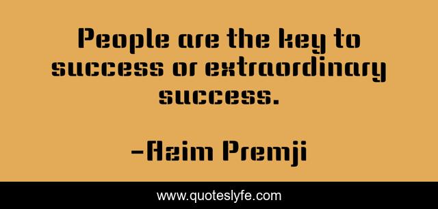 This page presents the quote "People are the key to success or extraordinary success.". Author of this quote is Azim Premji. This quote is about key to success, people,.